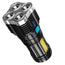 This High-Power LED Camping Torch is a versatile and powerful lighting solution designed for outdoor enthusiasts and anyone in need of reliable illumination. Featuring 4 high-intensity lamp beads and a COB side light, this flashlight provides bright, wide-area coverage for all your outdoor adventures. Its rechargeable design ensures you can easily keep it powered up, while the portable and durable construction makes it ideal for camping, hiking, and emergency use. With four lighting modes, you can easily adjust the brightness to suit any situation, from focused beams to wide-angle floodlighting.